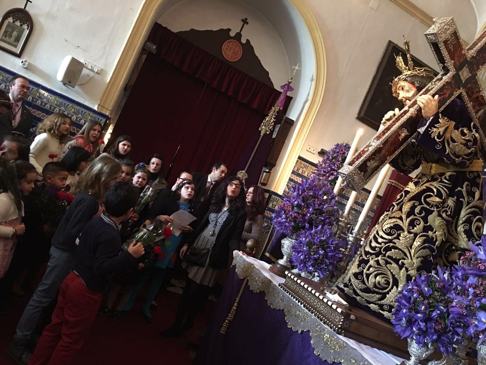 El grupo infantil, realizó su tradicional ofrenda floral, llenando de claveles rojos y de la alegrĆa al SeƱor de Cristina, Ā«Dejad que los niƱos se acerquen a mĆĀ» …… y ahĆ estaban ellos, siempre junto a ĆL.